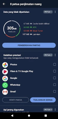 Selain membebaskan ruang, aplikasi ini menawarkan pandangan mendalam tentang bagaimana aplikasi mempengaruhi prestasi peranti anda secara keseluruhan. Kenal pasti aplikasi yang rakus menggunakan data anda atau yang menghabiskan bateri dengan cepat, membolehkan anda membuat keputusan termaklum untuk mengekalkan hayat bateri dan mengawal penggunaan data. Pengurus Aplikasi yang berkuasa membantu anda menemui aplikasi yang jarang digunakan, membolehkan anda mengurus dan mengalih keluarnya untuk kecekapan yang lebih baik. Pantau juga kesihatan sistem anda secara keseluruhan; semak penggunaan CPU, jejak RAM dan ruang storan dalaman anda, serta periksa paras dan suhu bateri untuk memastikan peranti beroperasi pada tahap terbaiknya.
