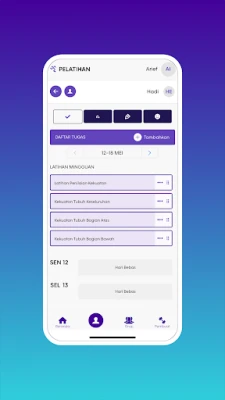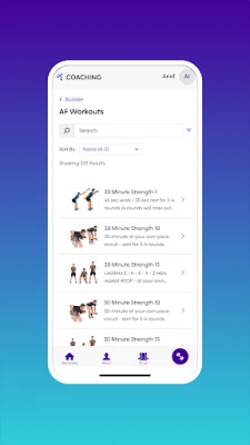 Pengurusan program dan kumpulan menjadi lebih mudah dengan AF Coach. "Tab Builder" memberi kuasa kepada jurulatih untuk mencipta dan menetapkan latihan khusus kepada ahli dan klien mereka. Sama ada anda memilih dari perpustakaan latihan sedia ada yang luas atau membina senaman dan pelan anda sendiri, fleksibiliti sentiasa di tangan anda. Untuk pengurusan komuniti yang lebih tersusun, "Tab Grup" (Groups Tab) membolehkan anda membentuk dan mengatur kumpulan khusus (misalnya, peserta "The Real AF 21-Day Reboot"), menghantar mesej kepada mereka, dan memantau aktiviti kumpulan dengan efisien. Selain itu, "Tab Pelatihan AF" (AF Training Tab) menawarkan akses kepada program latihan mingguan yang berharga untuk membantu anda menganjurkan Latihan Berpasukan dan sesi Latihan SGT / Satu lawan Satu, *dengan ketersediaan berdasarkan perjanjian francais kelab anda.