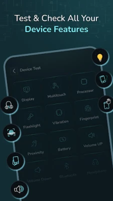 Apa yang lebih menarik, aplikasi ini dilengkapi dengan pelbagai ujian diagnostik untuk mengesahkan integriti perkakasan anda. Sama ada anda ingin menguji sensitiviti sentuhan skrin, fungsi multi-sentuhan, penderia cahaya, lampu suluh, getaran, penderia cap jari, penderia jarak, pecutan, butang kelantangan, Bluetooth, atau sokongan fon kepala, setiap ujian direka untuk memberikan anda gambaran yang jelas tentang keadaan fungsionaliti peranti anda. Selain itu, alat Penganalisis Kelajuan yang terbina dalam membolehkan anda mengukur kelajuan muat turun dan muat naik internet peranti anda, memberikan visualisasi data yang mudah difahami untuk memantau prestasi rangkaian anda.