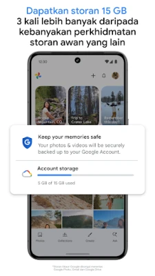 *Storan Google Account dikongsi merentas Google Photos, Gmail dan Google Drive.