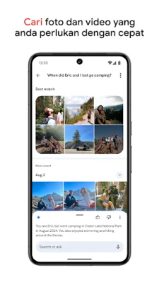 Lupakan galeri yang berselerak. Google Photos secara bijak menyusun koleksi anda dengan mengesan dan mengelompokkan foto pendua serta menawarkan folder pintar untuk tangkapan skrin, dokumen, dan album peribadi, memastikan galeri anda sentiasa kemas dan mudah dicari. Cari detik istimewa dengan cara yang semula jadi – cukup taip "Saya dan Alice ketawa" atau "Berkayak di tasik," dan biarkan kecerdasan buatan mencari imej yang tepat. Tambahan pula, simpanan sensitif anda dilindungi dalam folder terkunci, hanya boleh diakses melalui kunci skrin peranti anda, memberikan ketenangan fikiran.