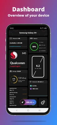 Selami lautan maklumat dengan paparan Papan Pemuka yang intuitif, di mana anda boleh memantau RAM, storan dalaman dan luaran, status bateri, serta prestasi CPU secara langsung. Dapatkan perincian mendalam mengenai peranti anda, termasuk nama model, pengeluar, dan cap jari binaan. Teroka maklumat sistem seperti versi OS, jenis, status, dan data kernel, memastikan anda sentiasa peka dengan nadi peranti anda. Bahkan, G-CPU mendedahkan butiran CPU anda dari kelajuan jam maksimum hingga ke nama GPU, serta kesihatan bateri, butiran rangkaian dan spesifikasi paparan secara terperinci.