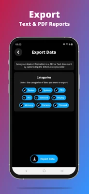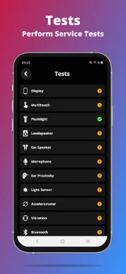 Bukan sekadar pemerhati, G-CPU juga adalah makmal diagnostik peribadi anda. Lakukan ujian menyeluruh untuk mengesahkan fungsi paparan, multi-sentuhan, lampu suluh, pembesar suara, mikrofon, sensor jarak, pecutan, getaran, Wi-Fi, pengimbas cap jari, dan butang kelantangan. Ini membolehkan anda mengenal pasti dan mengoptimumkan sebarang isu. Aplikasi ini turut menyokong paparan ciri-ciri kamera anda yang pelbagai, serta fungsi kompas yang berguna. Untuk rekod atau perkongsian, G-CPU membolehkan anda mengeksport laporan yang boleh disesuaikan dalam format teks atau PDF. Kekal berhubung dengan data penting melalui sokongan widget yang memudahkan akses cepat kepada maklumat memori, bateri, rangkaian dan storan dari skrin utama anda.