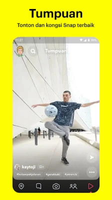 Selami dunia yang penuh dengan naratif visual. Ikuti perkembangan hari rakan-rakan anda melalui Cerita peribadi mereka, atau terokai pelbagai kisah menarik daripada komuniti Snapchat yang sejajar dengan minat anda. Jangan lepaskan berita terkini dan Rancangan Asal eksklusif untuk hiburan yang tiada tandingan. Ingin kongsikan ciptaan terbaik anda dengan khalayak yang lebih luas? Hantar Snap anda ke Tumpuan, platform utama untuk menonjolkan kandungan paling menghiburkan, di mana anda juga boleh menonton, menyukai, dan berkongsi Snap kegemaran dari serata dunia. Manfaatkan Peta untuk berhubung secara visual dengan rakan terdekat, melihat lokasi mereka secara peribadi, atau menjelajah kisah-kisah langsung yang berlaku di sekitar anda dan di seluruh pelosok bumi, sambil kekal dalam Mod Halimunan apabila privasi diperlukan.