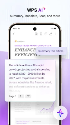 Sebagai suite pejabat serba lengkap, WPS Office menawarkan penyelesaian yang tiada tandingan pada peranti Android anda. Cipta dan sunting dokumen Word, hamparan, serta pembentangan dengan mudah menggunakan pelbagai templat sedia ada. Pengurusan PDF tidak pernah semudah ini; lihat, anotasi, tandatangan, pecahkan, gabungkan, malah tukarkan dokumen pejabat lain atau imej kepada PDF, serta tambah atau padam tera air dengan lancar. WPS Office juga mengutamakan kerja kolaboratif dengan WPS Cloud yang membolehkan penyegerakan masa nyata merentas peranti, memastikan dokumen anda sentiasa boleh diakses dan disunting di mana sahaja. Selain itu, anda boleh menyimpan dokumen ke perkhidmatan awan pihak ketiga seperti Dropbox, Google Drive, Box, Evernote, dan Microsoft OneDrive, serta berkongsi fail dengan pantas melalui pelbagai platform, memudahcara kerja jarak jauh dan pasukan maya.